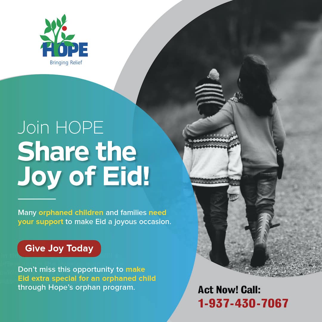 Send your Zakat al-Fitr as early as you can, and HOPE Relief will distribute it to the poor and needy before Eid.